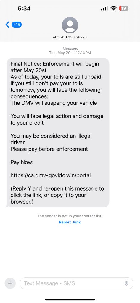 If this was really from the California DMV, it would not be texting from an international number—especially not one outside the U.S.